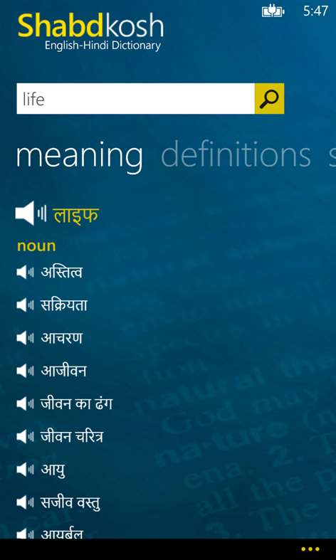It lets you search and get hindi meaning of a english word in less than a few seconds.